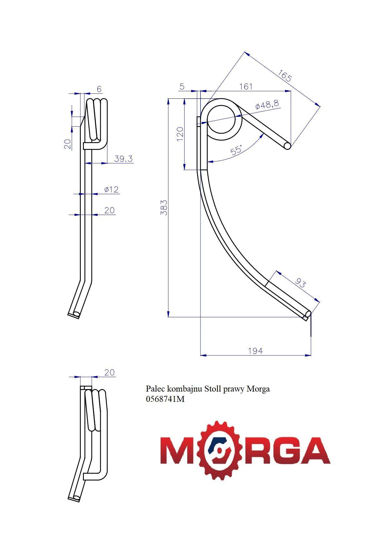 Palec Kombajnu Stoll Prawy Malowany Proszkowo Morga