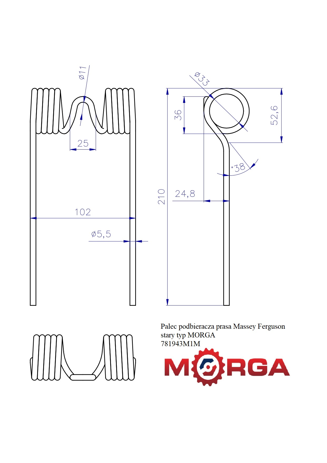 Palec Podbieracza Prasa Massey Ferguson Stary Typ Malowane Proszkowo Morga