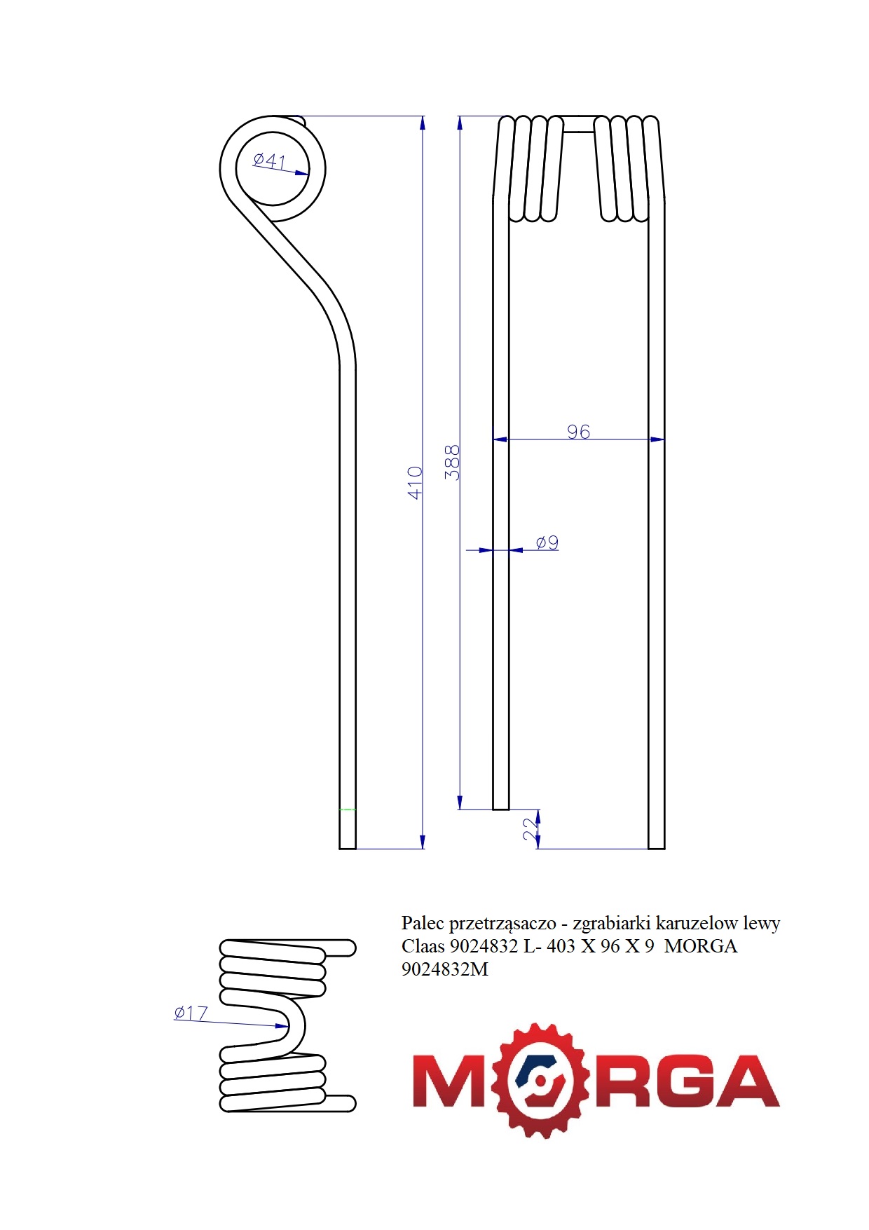 Palec przetrząsaczo-zgrabiarki krauzelowej Claas lewy Morga