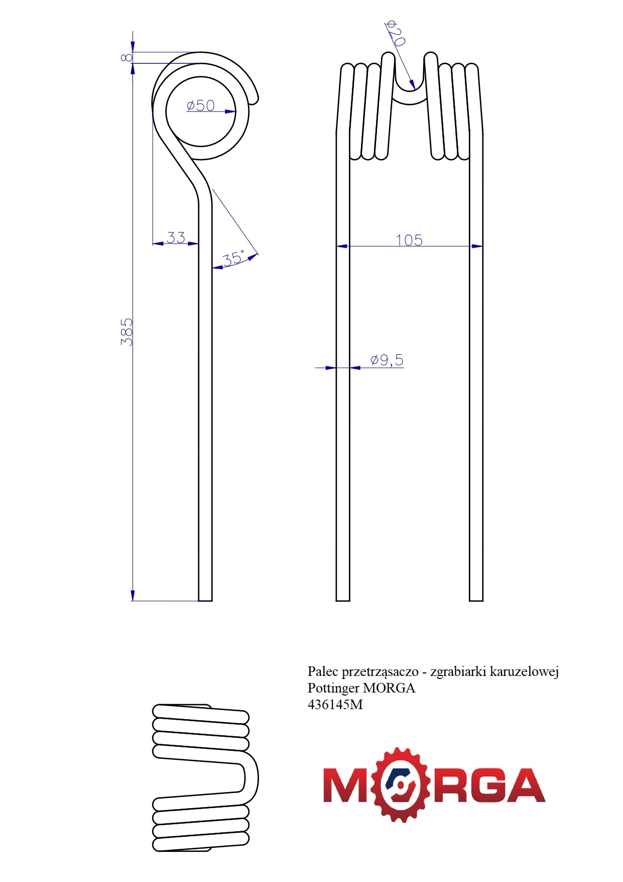 Palec Przetrząsaczo – Zgrabiarki Karuzelowej 436145 Pottinger Malowane