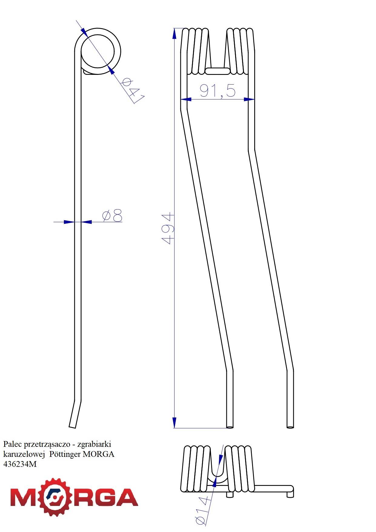 Palec przetrząsaczo – zgrabiarki karuzelowej 436234 Pöttinger malowane proszkowo MORGA