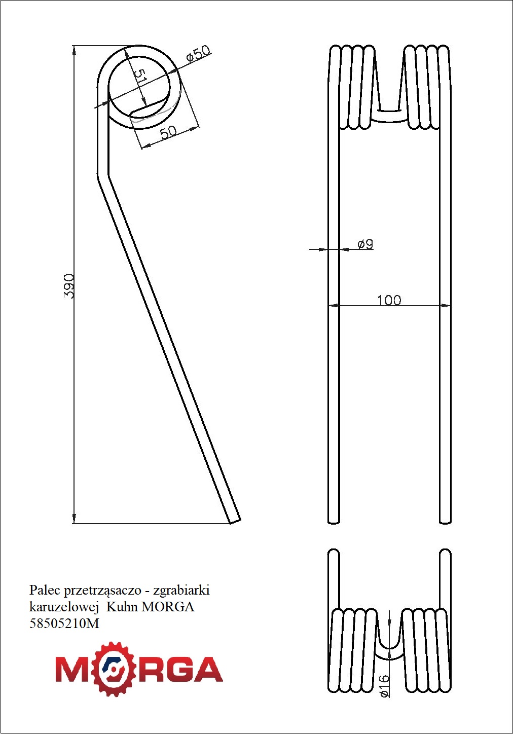 Palec przetrząsaczo-zgrabiarki karuzelowej Kuhn MORGA