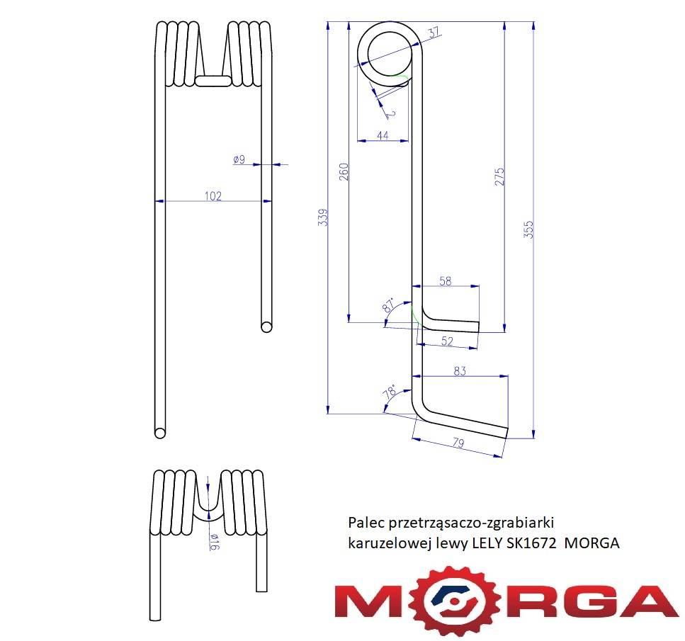 Palec przetrząsaczo-zgrabiarki karuzelowej lewy LELY SK1672 MORGA