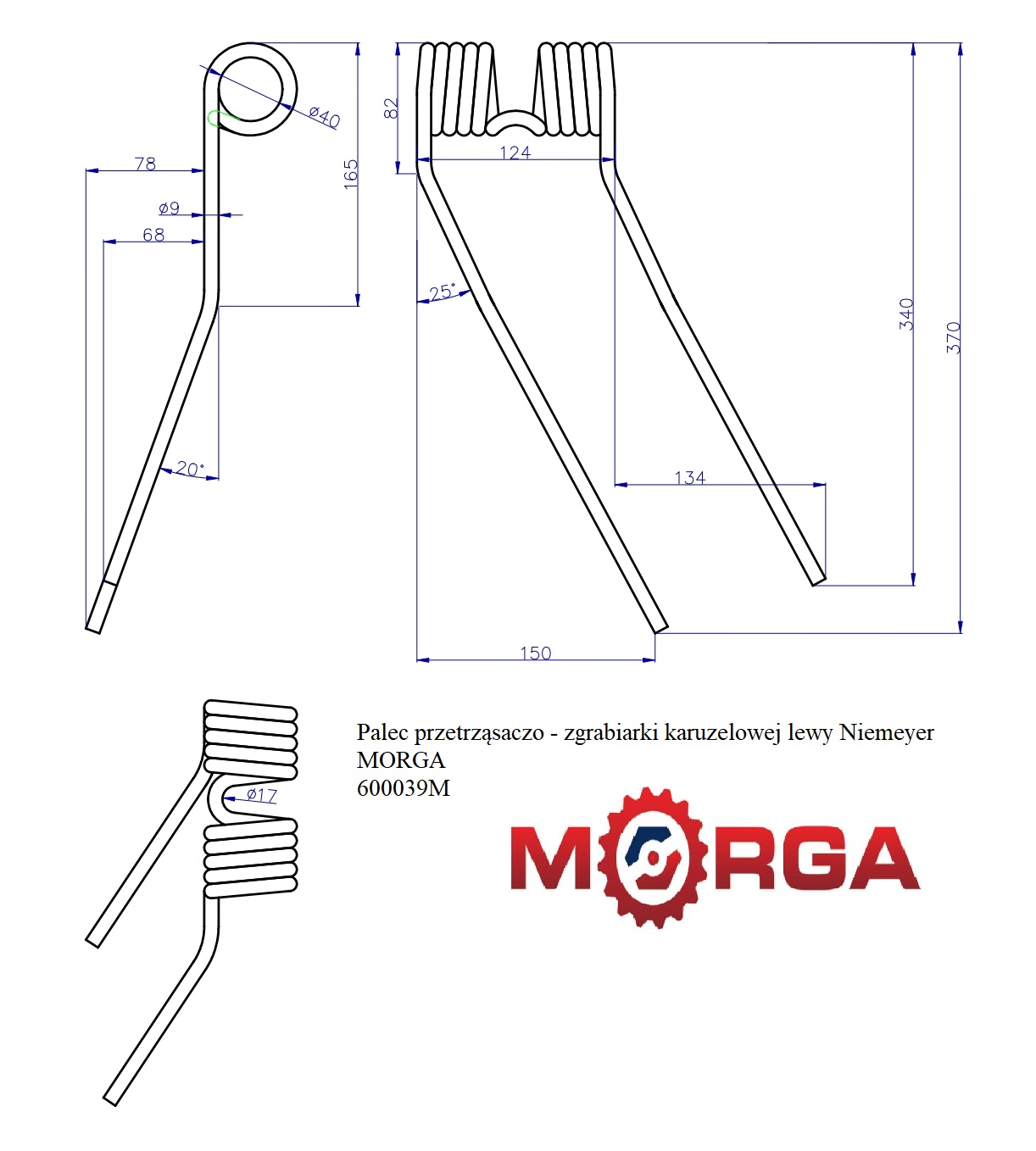 Palec przetrząsaczo-zgrabiarki karuzelowej Niemeyer Morga