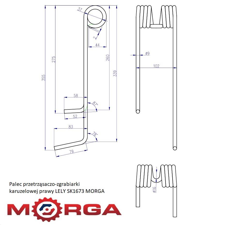 Palec przetrząsaczo-zgrabiarki karuzelowej prawy LELY SK1673 MORGA