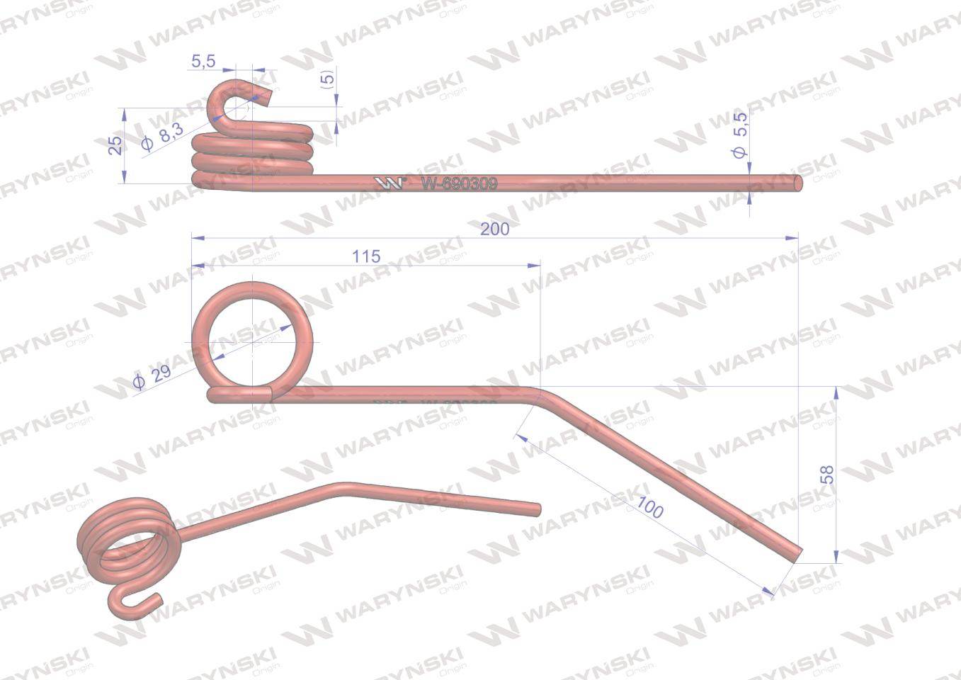 Palec sprężysty nagarniacza motowideł claas 690309 waryński