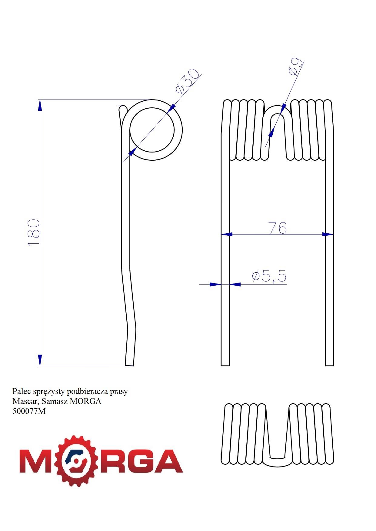 Palec sprężysty podbieracza prasy Mascar, Samasz 500.077 MISP-005-006 malowane proszkowo MORGA
