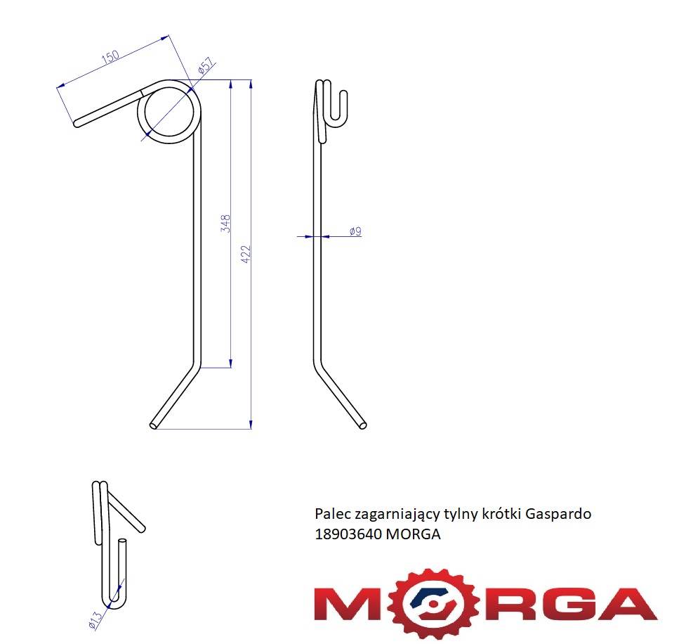 Palec zagarniający tylny krótki Gaspardo 18903640 MORGA