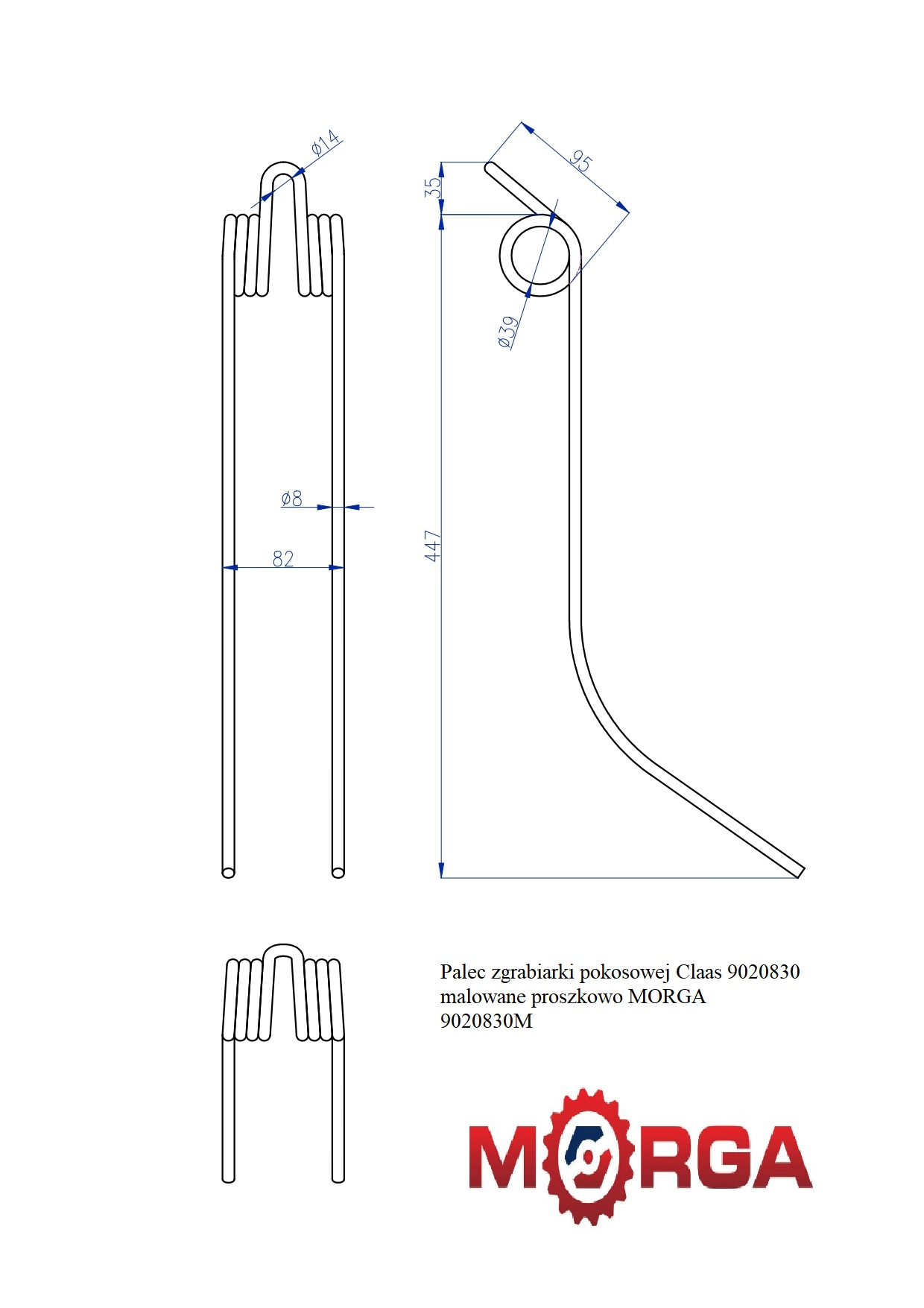 Palec Zgrabiarki Pokosowej Claas 9020830 Malowane Proszkowo Morga