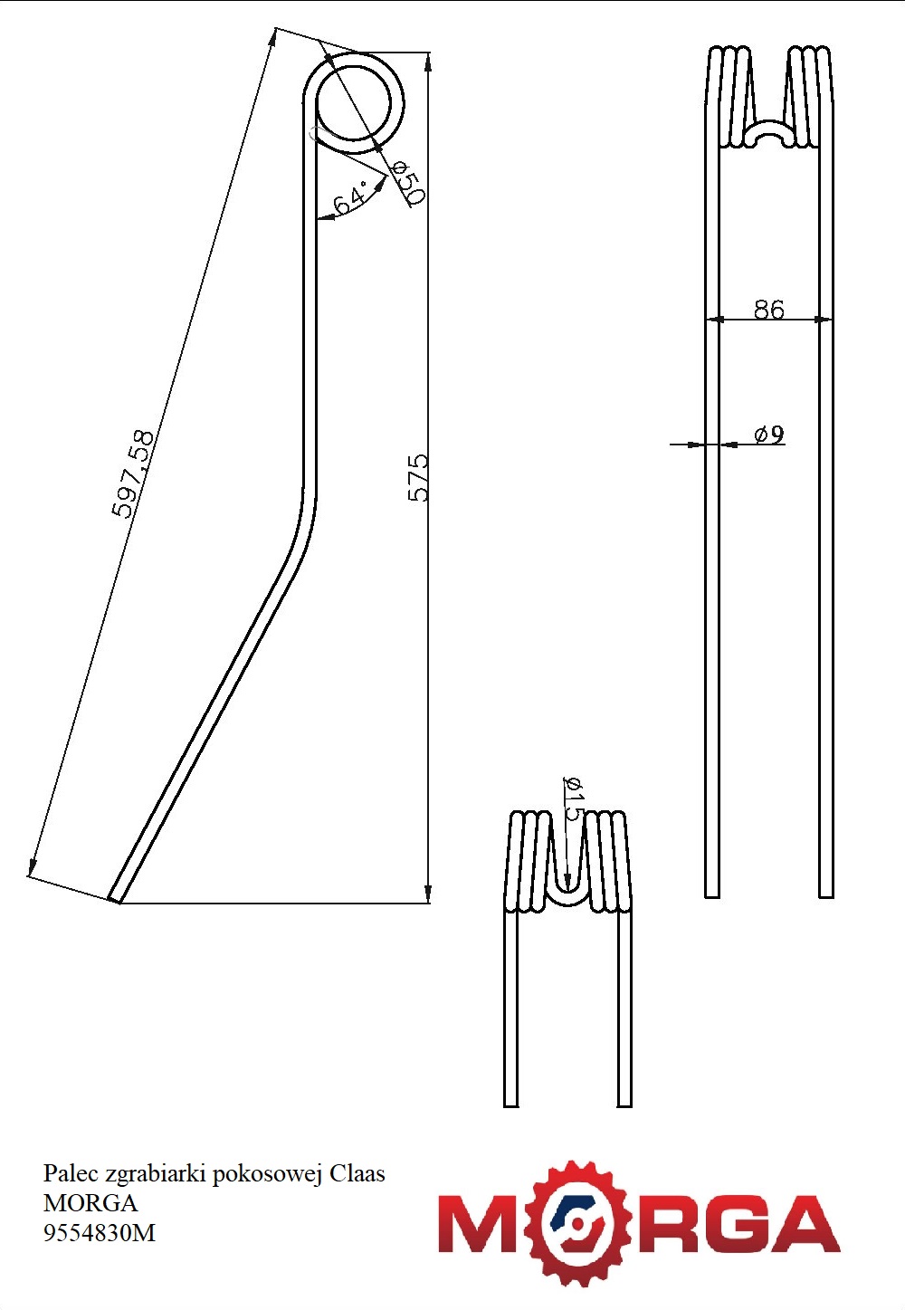 Palec Zgrabiarki Pokosowej Claas L 600 X 86 X 9 Malowane Proszkowo Morga