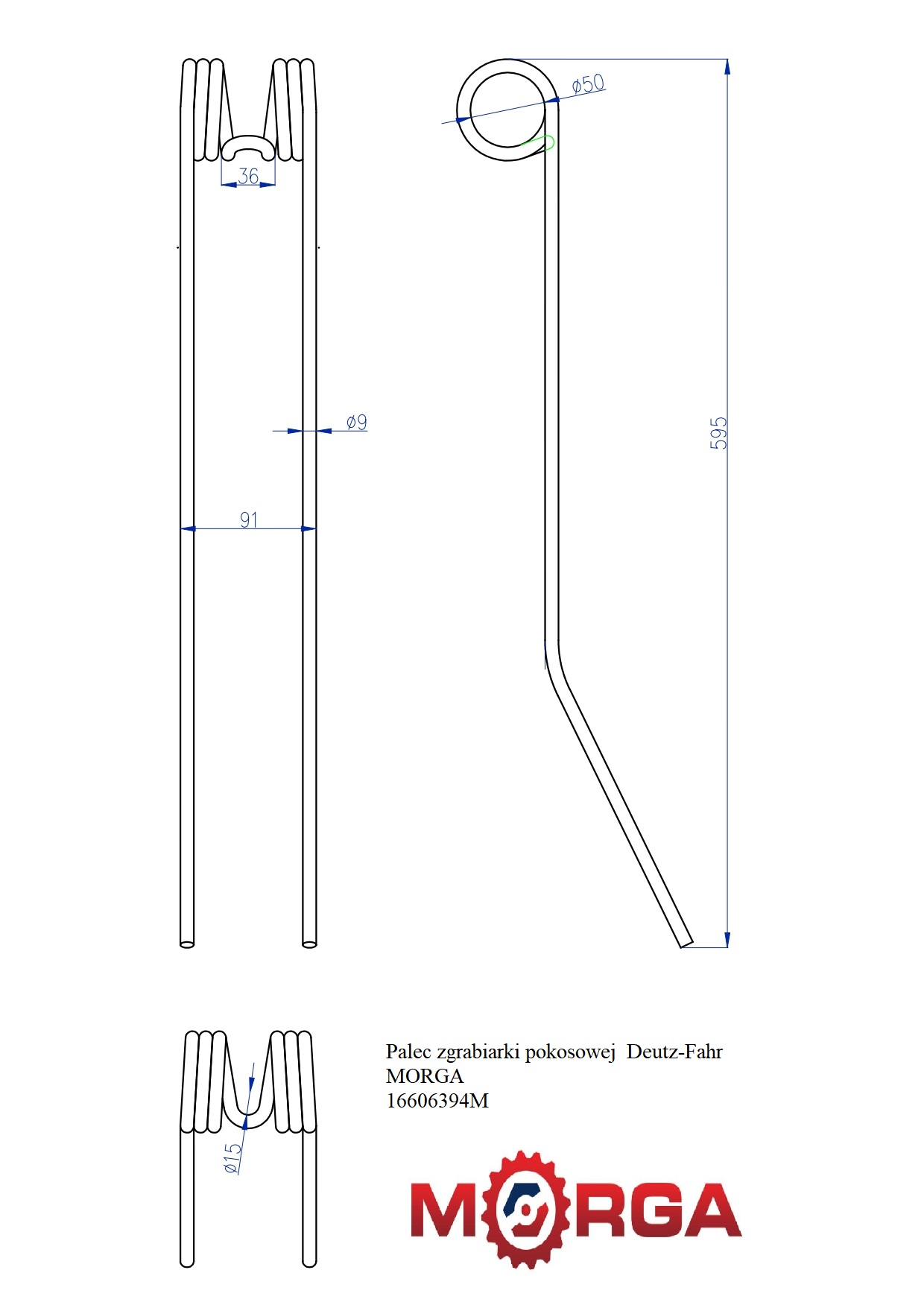 Palec Zgrabiarki Pokosowej Deutz-Fahr Malowane Proszkowo Morga