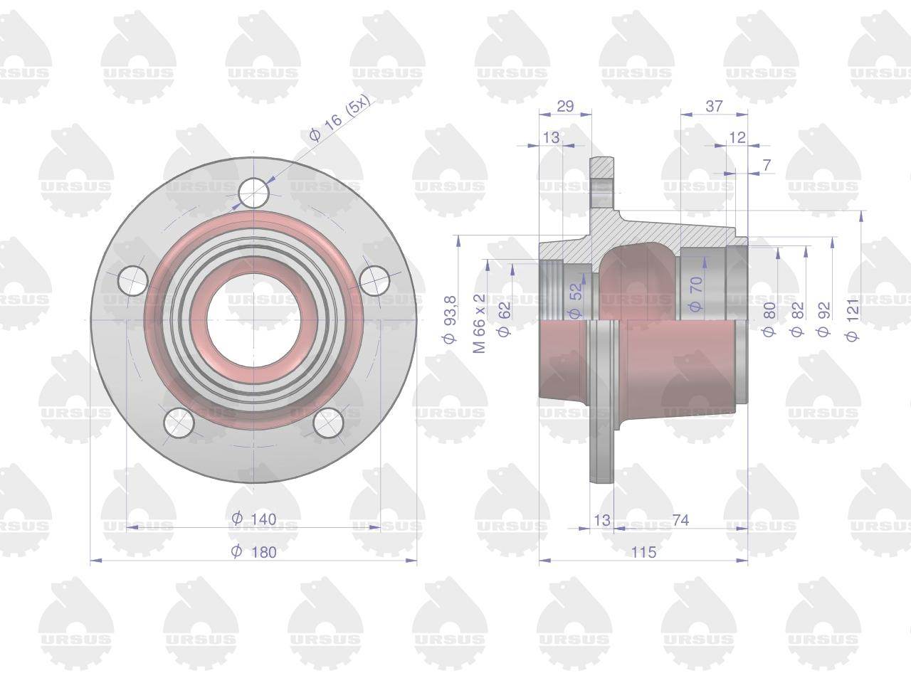 Piasta koła przedniego 5 otworów c-330 c-360 oryginał ursus