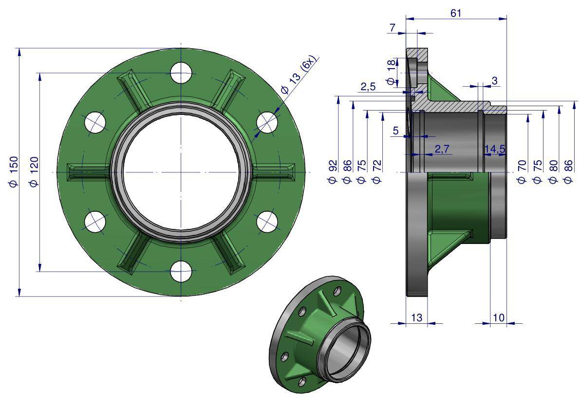 Piasta talerza agregatu 6-otworowa bezobsługowa wklęsła