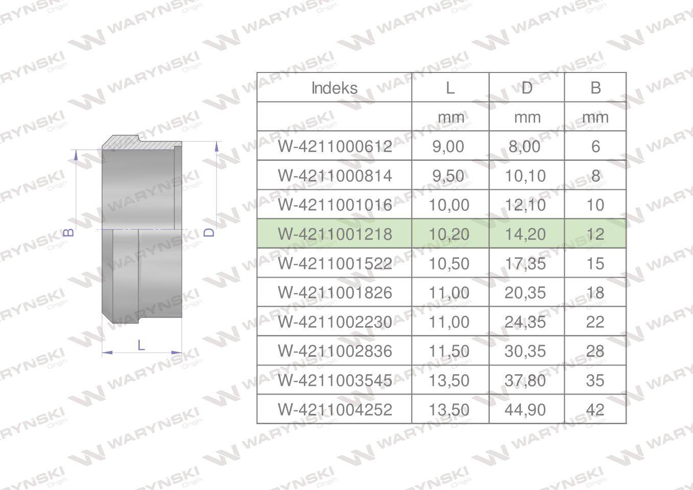 Pierścień zacinający hydrauliczny (dpr12l/s) 12l/12s waryński. Elementy złączne zostały zaprojektowane i wykonane zgodnie z obowiązującymi normami, które szczegółowo opisują wymagania jakościowe i wymiarowe. Są kompatybilne z elementami złącznymi innych renomowach producentów hydrauliki siłowej.