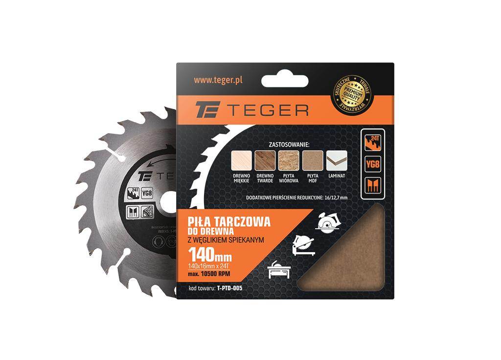 Piła tarczowa do drewna z węglikiem spiekanym 140x16x24t / teger przeznaczona do cięcia wzdłużnego i poprzecznego drewna litego, sklejki, płyt wiórowych, płyt laminowanych i mdf, materiałów drewnopodobnych i kompozytowych. Zęby widiowe z węglikiem spiekanym zapewnia długą żywotność tarczy przy intensywnej pracy.