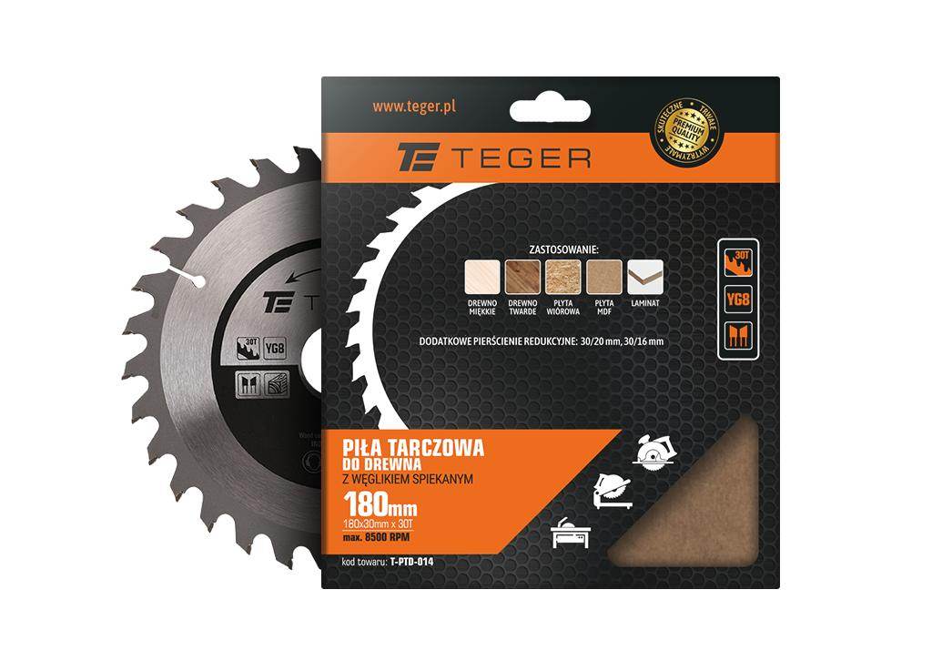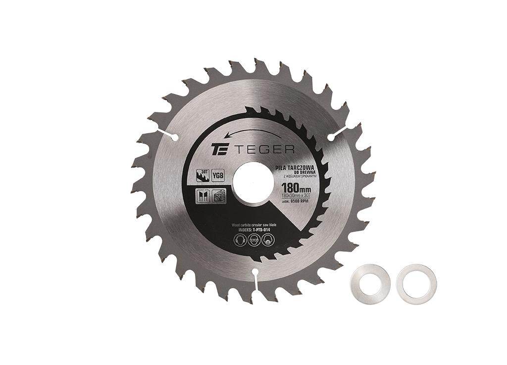 Piła tarczowa do drewna z węglikiem spiekanym 180x30x30t / teger przeznaczona do cięcia wzdłużnego i poprzecznego drewna litego, sklejki, płyt wiórowych, płyt laminowanych i mdf, materiałów drewnopodobnych i kompozytowych. Zęby widiowe z węglikiem spiekanym zapewnia długą żywotność tarczy przy intensywnej pracy.