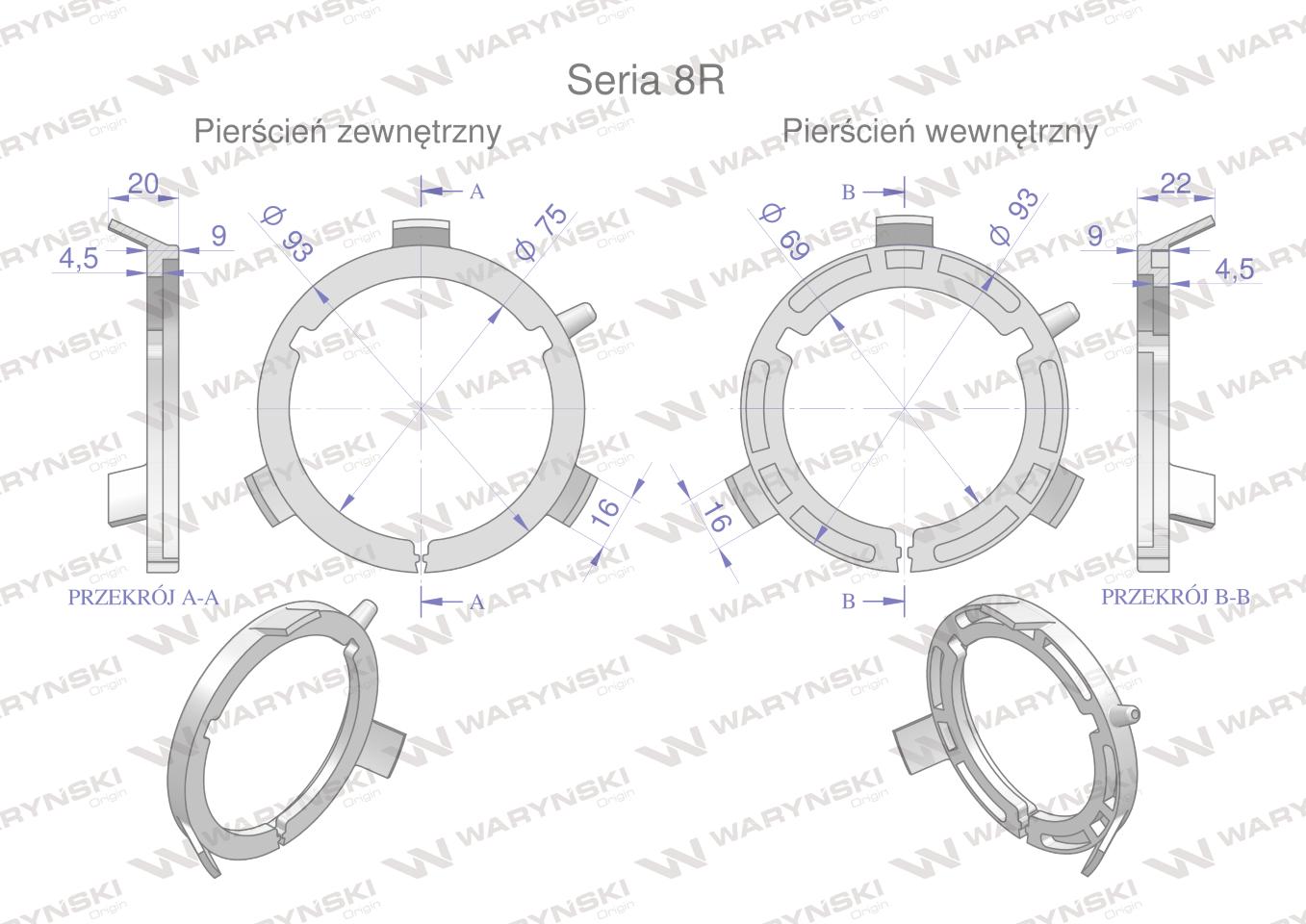 Plastikowe łożyska do obudowy wału zestaw 93x69mm i 93x75mm seria 8r waryński