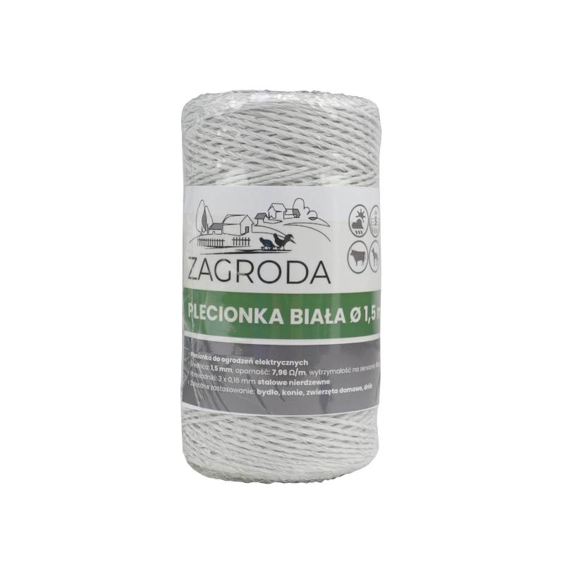 Plecionka ogrodzeniowa Zagroda ma podwyższoną wytrzymałość na zerwanie- do 80 kg, co umożliwia odpowiedni naciąg na dużych przestrzeniach.