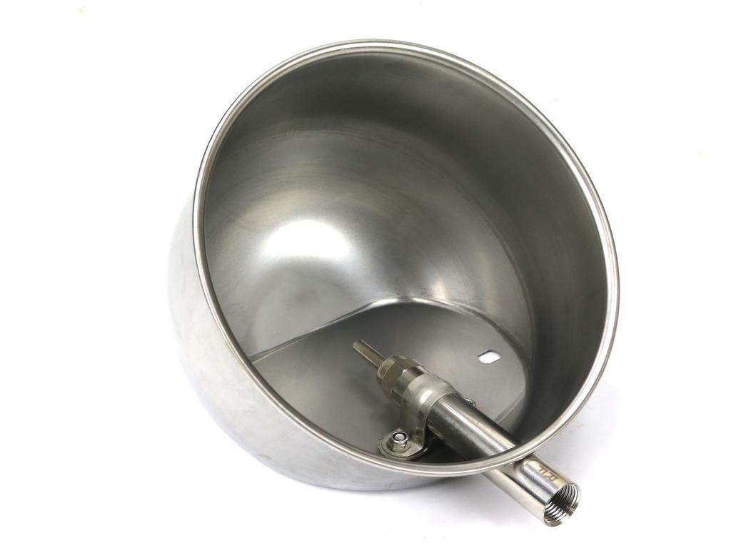 Poidło dla tuczników miskowe wykonane ze stali nierdzewnej ich właściwości pozwalają na optymalny przepływ transportowanej masy.