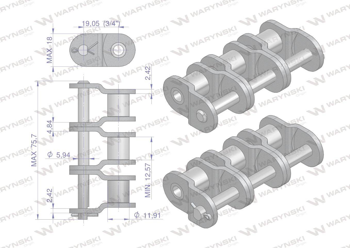 Półogniwo łańcucha wzmocnione p12a-3 ansi a 60 r3 3/4 waryński 5szt