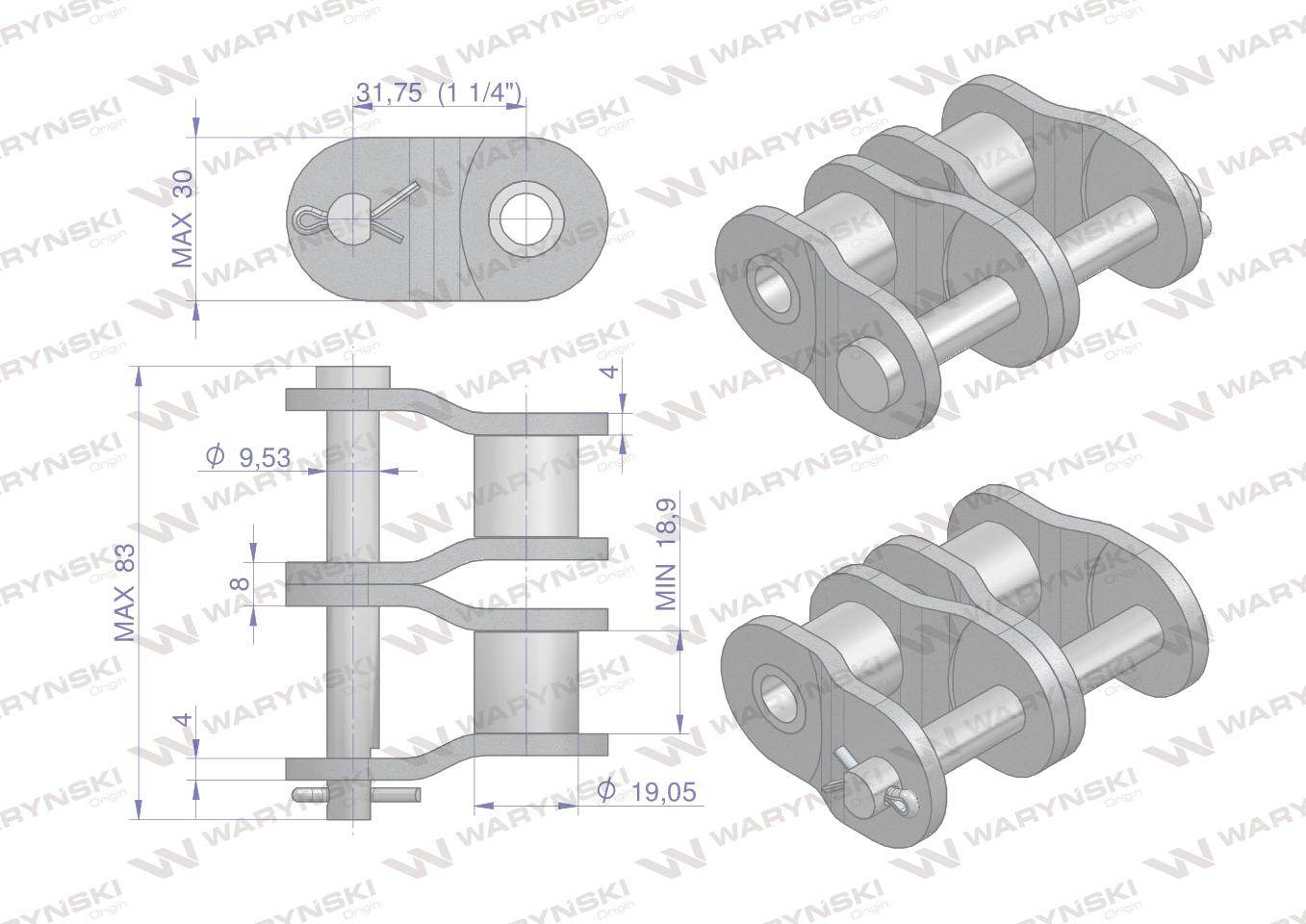 Półogniwo łańcucha wzmocnione p20a-2 ansi a 100 r2 1.1/4 waryński 3szt