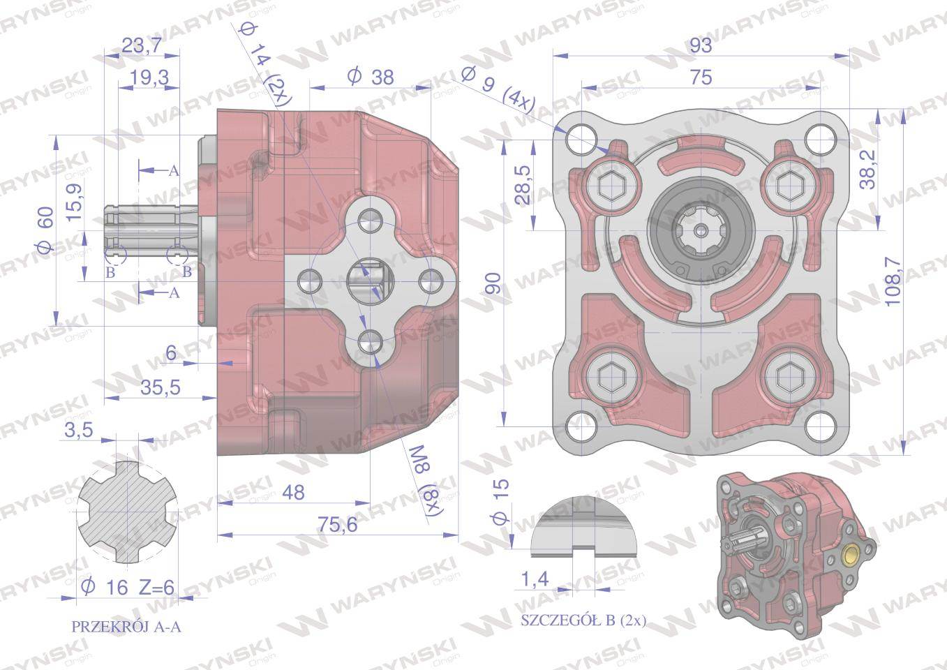 Pompa hydrauliczna podnośnika t-25 6 frezów lewa waryński