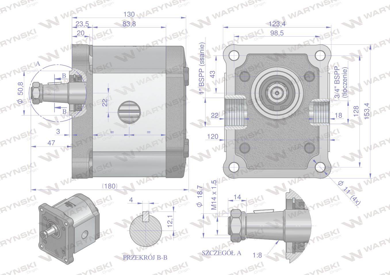 Pompa hydrauliczna zębata 39.0cm3 grupa 3 typ europejski wałek 18 przyłącza gwintowane obroty prawe max.240 bar waryński