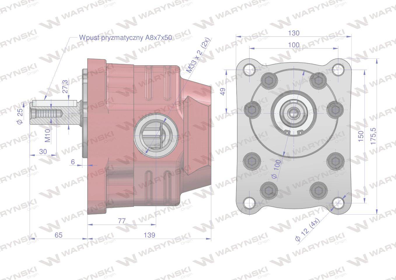 Pompa hydrauliczna zębata do cyklop pzs-kz-50p obroty prawe 20mpa w korpusie żeliwnym waryński