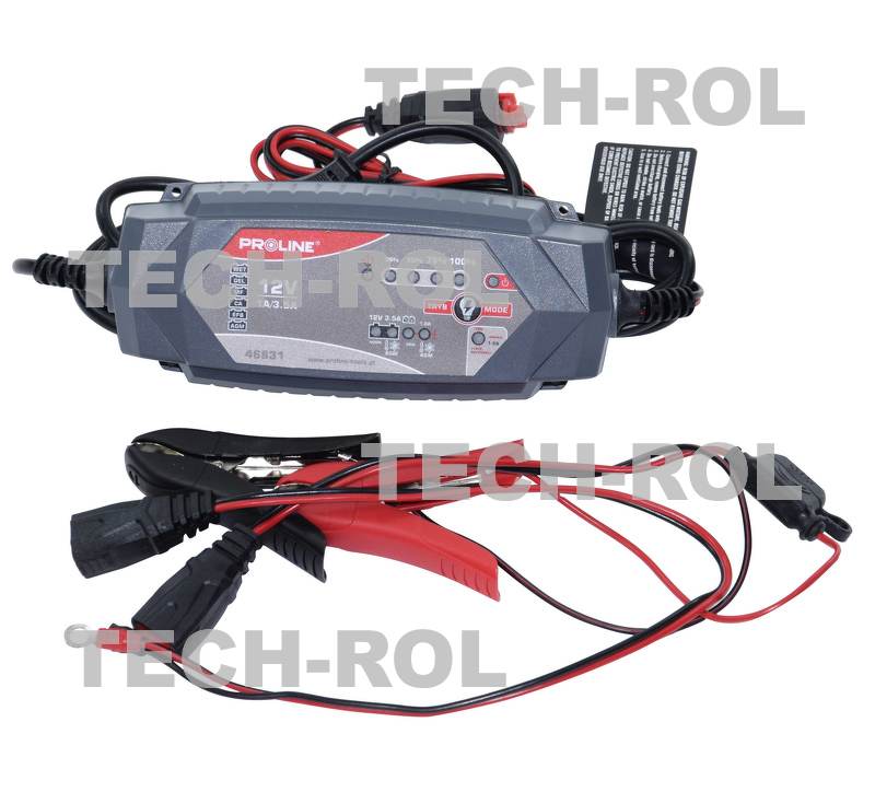 Prostownik inwertorowy 12V do ładowania akumulatorów o napięciu 12V i pojemności od 2Ah do 120Ah 46831 Proline