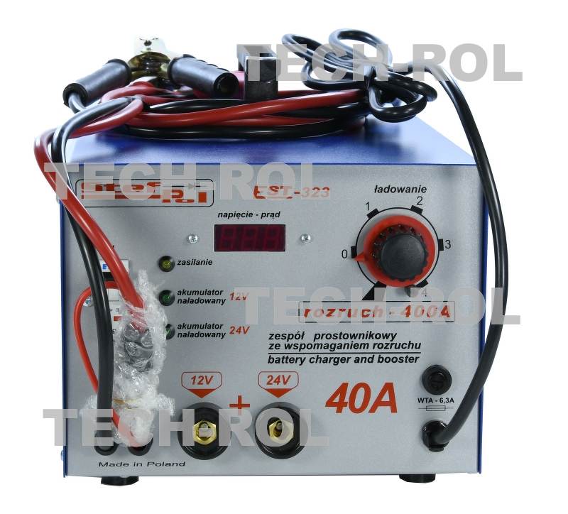 Prostownik z rozruchem, 12V / 24V, 40A, do ładowania akumulatorów o napięciu 12V, 24V i pojemności od 70Ah do 400Ah EST323 Stef-Pol