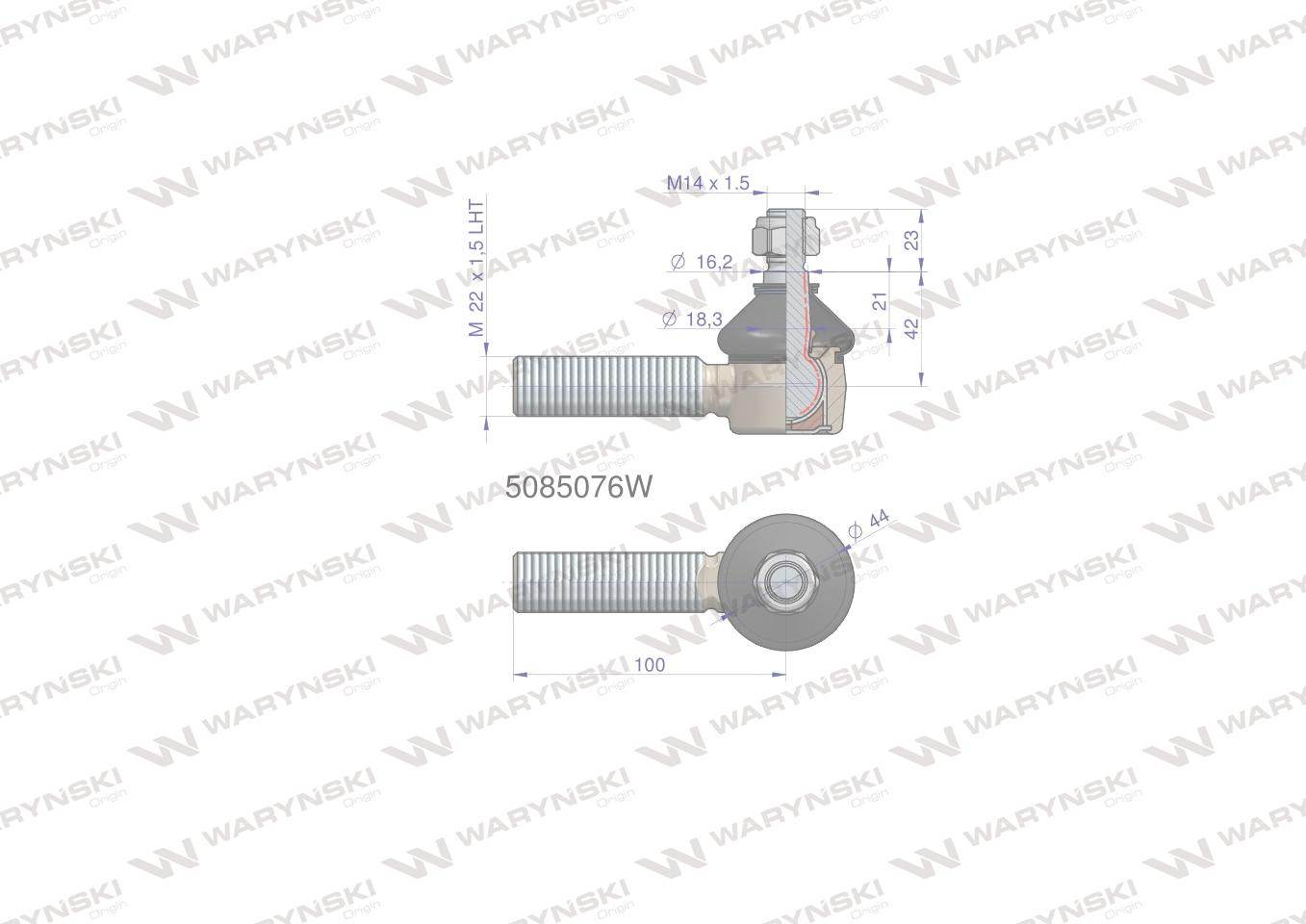 Przegub kierowniczy 100mm- m22x1,5 l 5085076 waryński