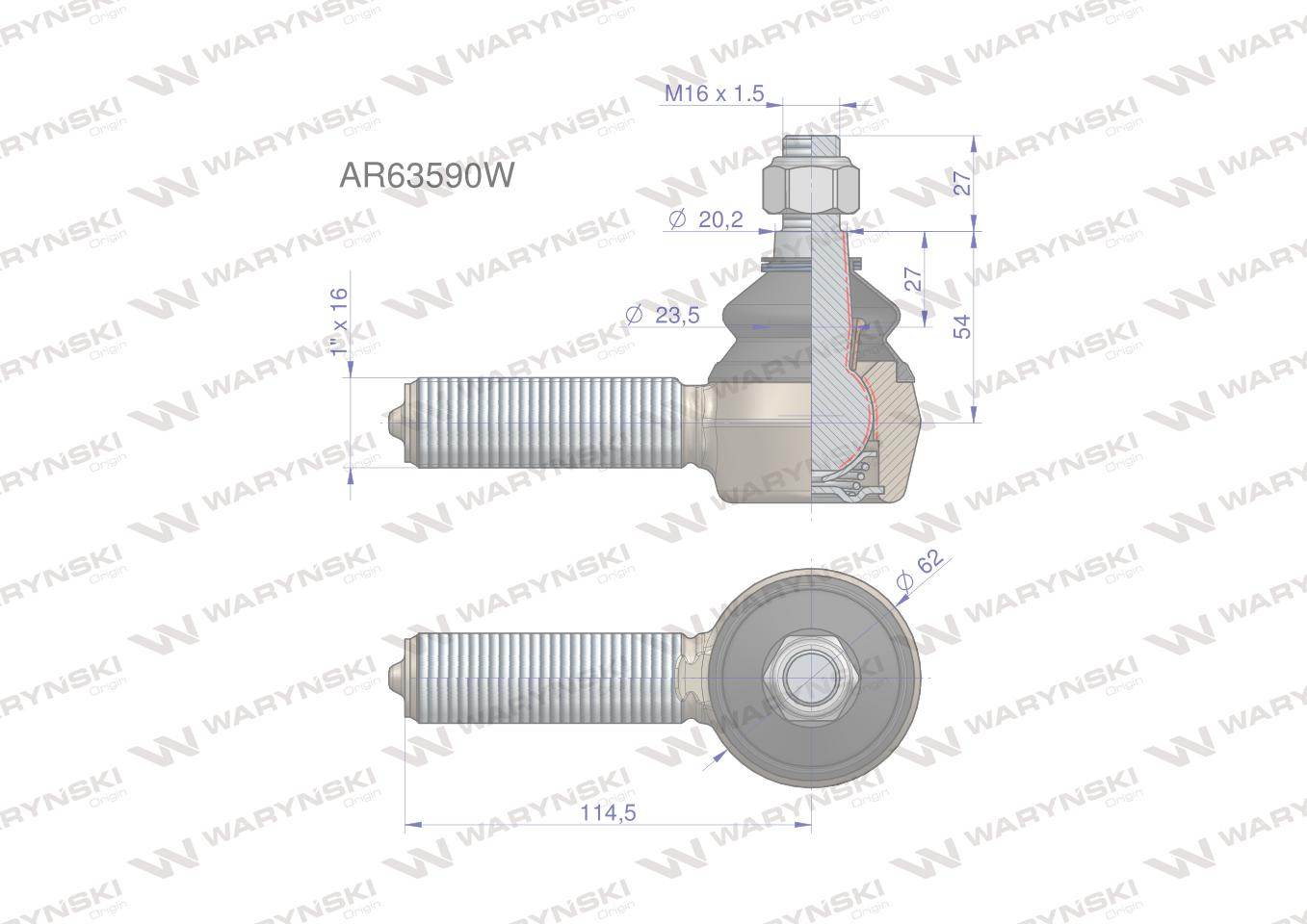 Przegub kierowniczy 114,5mm 1″ ar63590 waryński