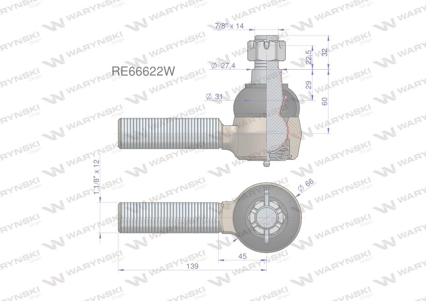 Przegub kierowniczy 139mm 1 1/8" re66622 waryński