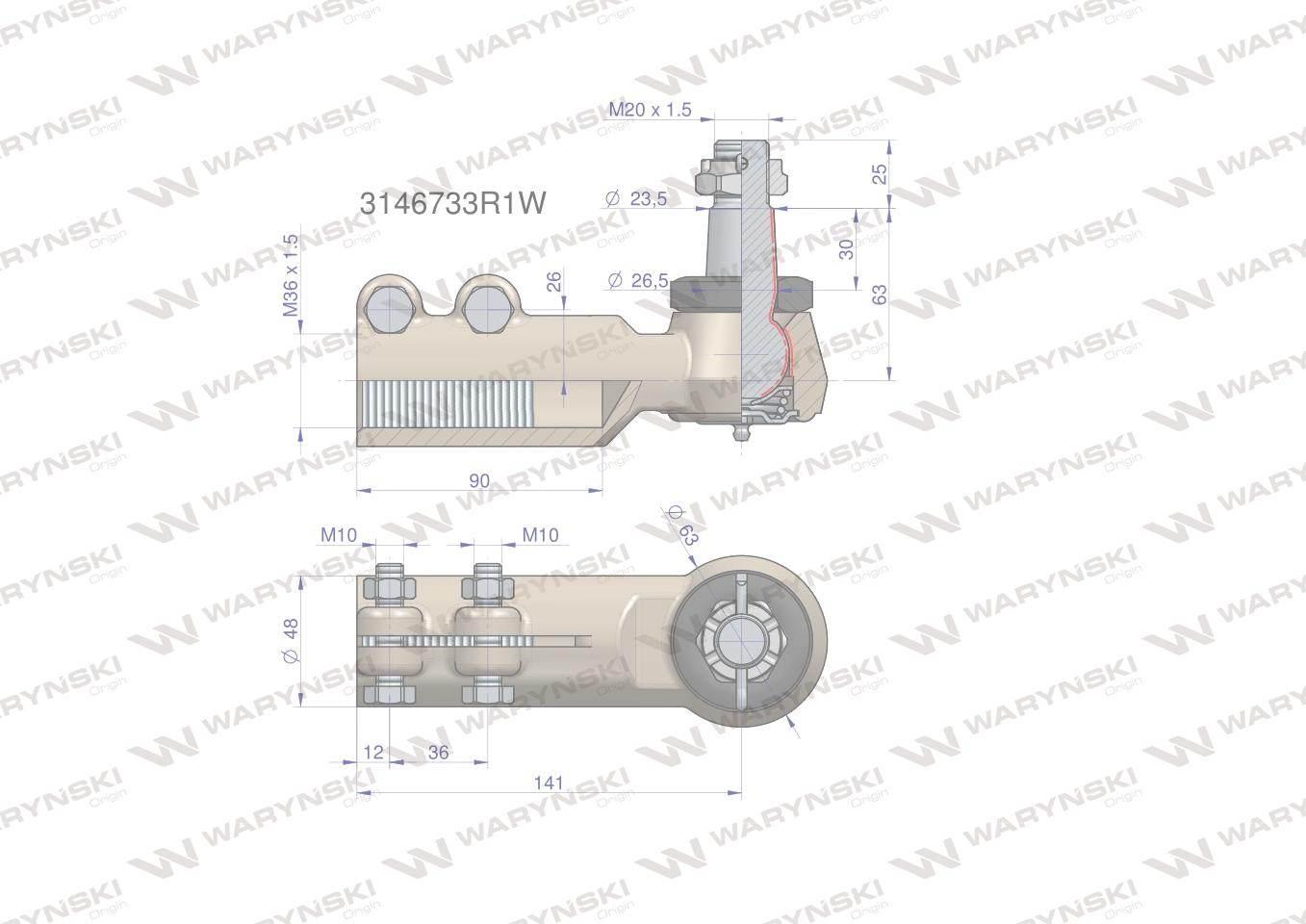 Przegub kierowniczy 141mm- m36x1,5 3146733r1 waryński