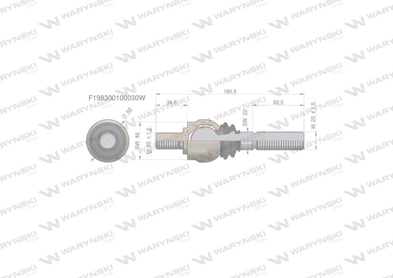 Przegub kierowniczy 180,5mm- m20x1,5 m22x1,5 f198300100030 waryński