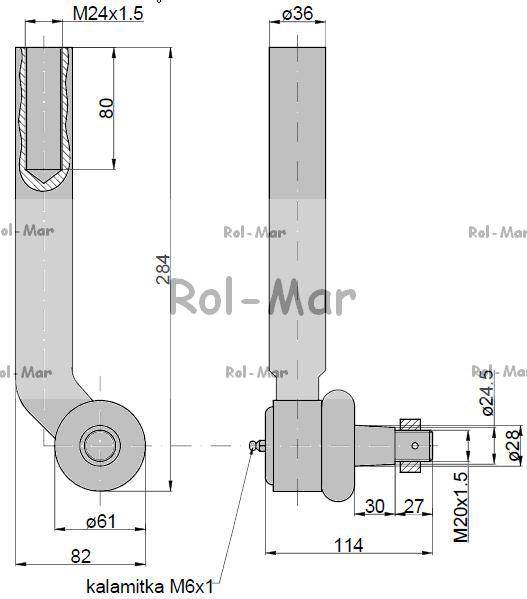 Przegub kierowniczy 260mm m24x1,5 al116741 john deere taq
