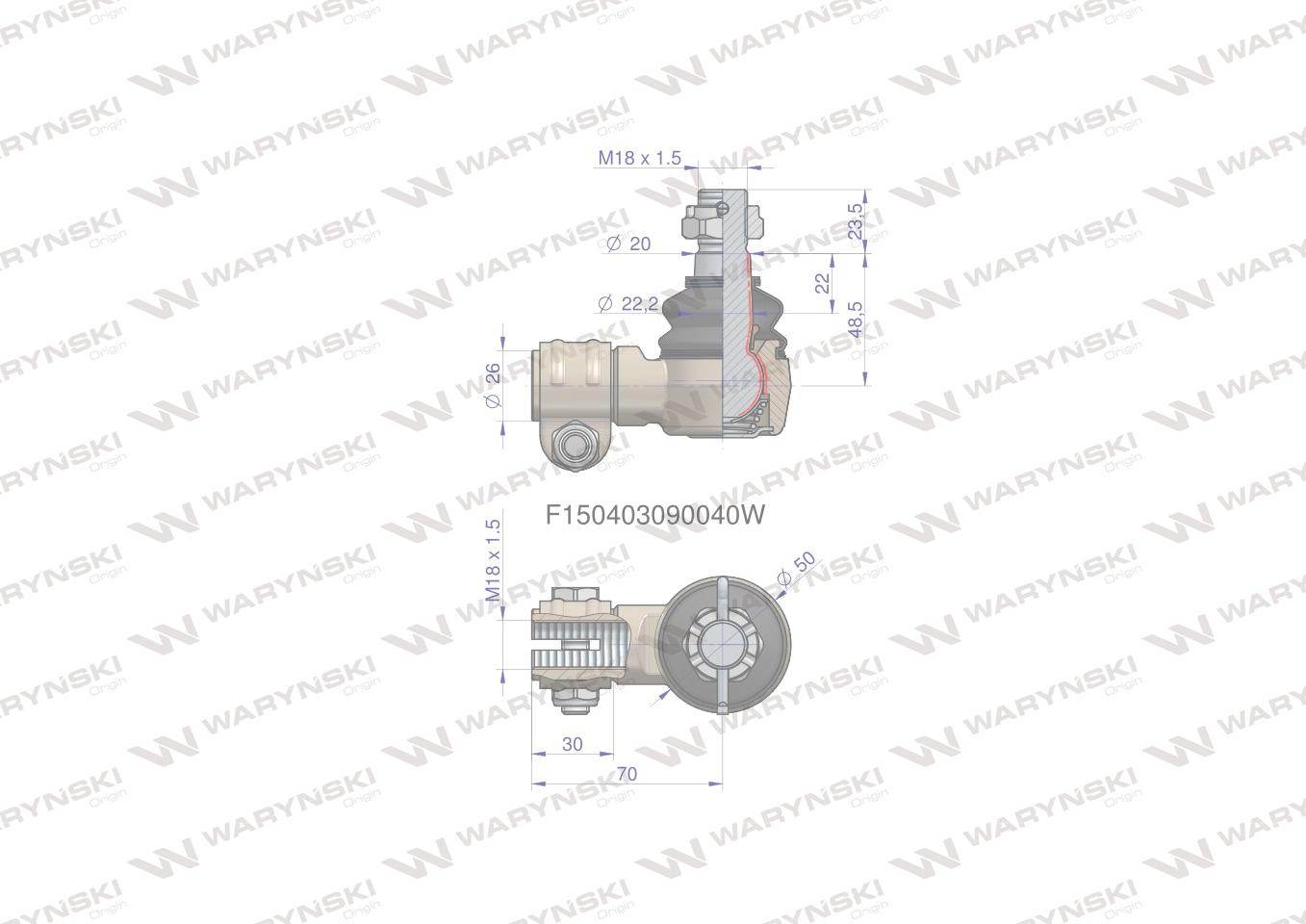 Przegub kierowniczy 70mm- m18x1,5 f150403090040 waryński