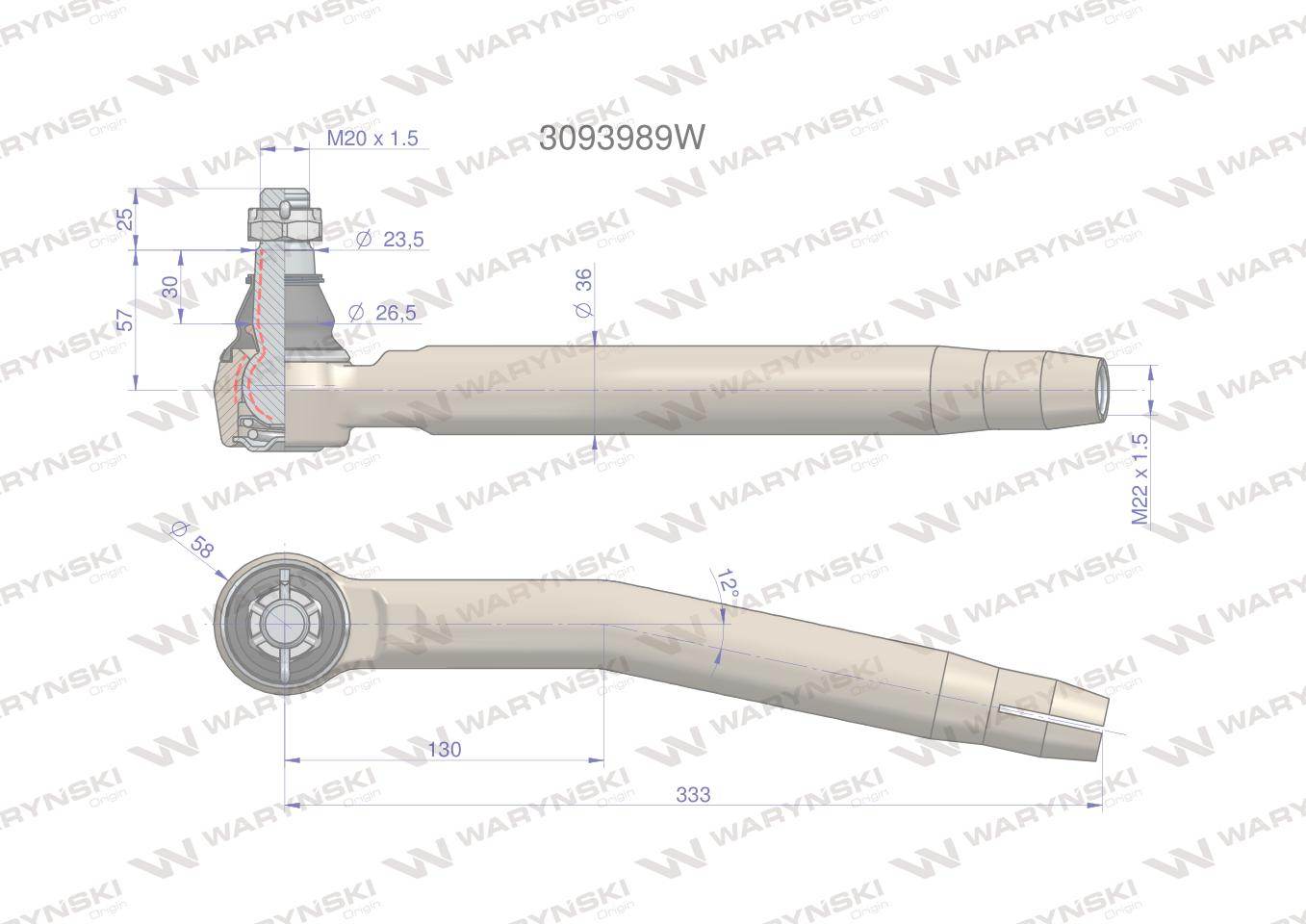Przegub kierowniczy lewy m22x1.5 f168303100030 waryński