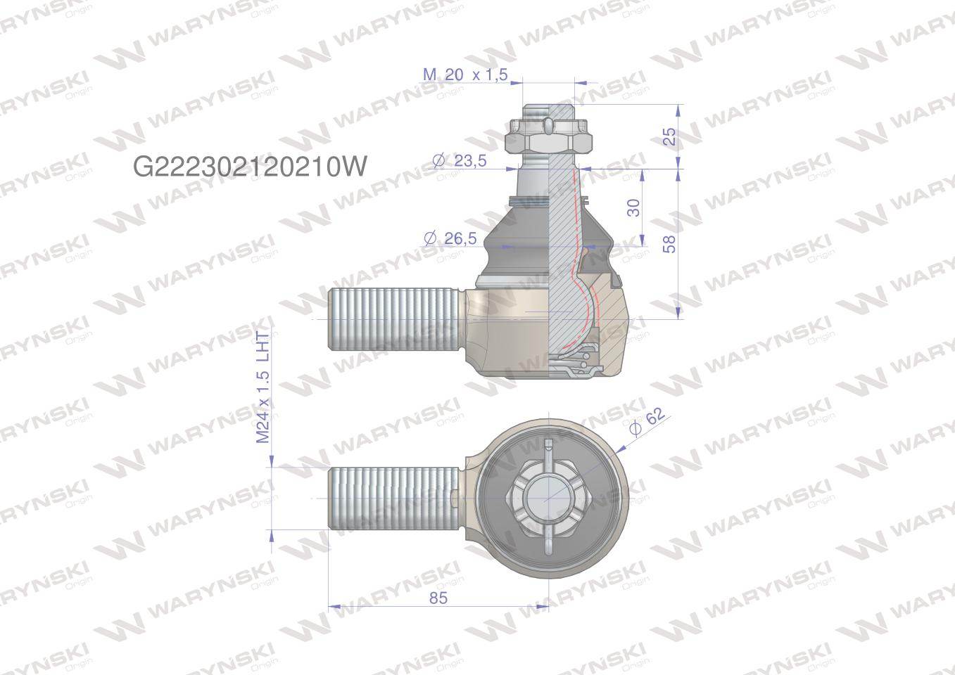 Przegub kierowniczy m24x1.5l g222302120210 waryński