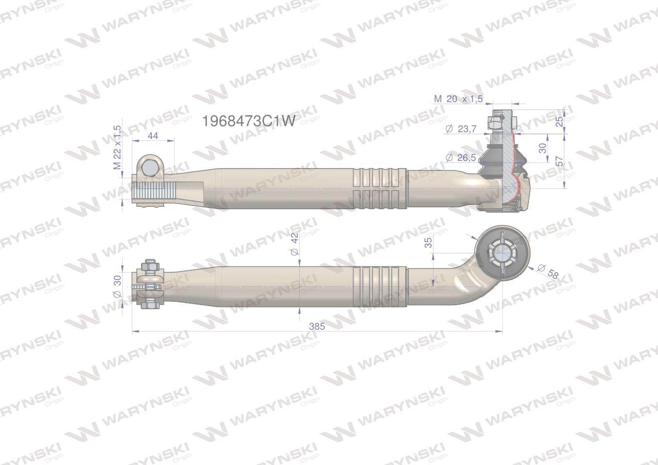 Przegub kierowniczy prawy 385mm- m22x1,5 1968473c1 waryński