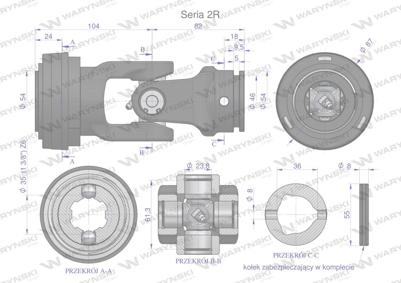Przegub kompletny z krzyżakiem 23.8×61.3 seria 2 do rury wewnętrznej 36mm waryński
