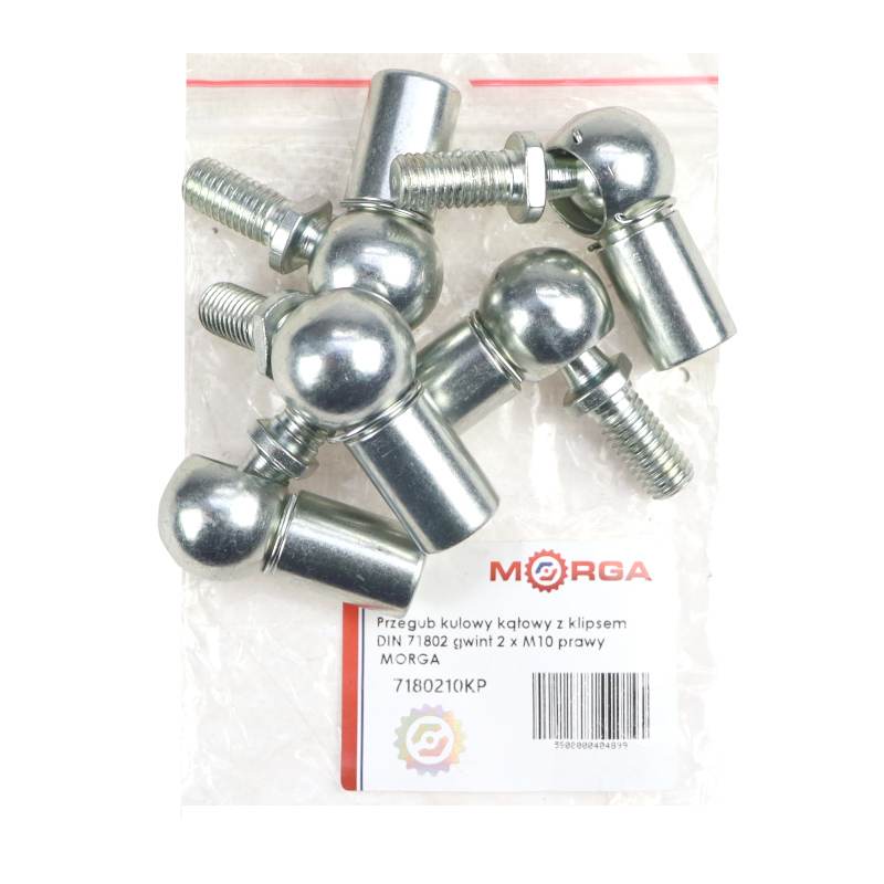 Przegub Kulowy Kątowy Z Klipsem Din 71802 Gwint 2 X M10 Prawy Morga A 5szt