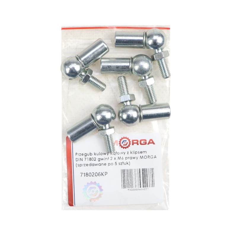 Przegub Kulowy Kątowy Z Klipsem Din 71802 Gwint 2 X M6 Prawy Morga A 5szt