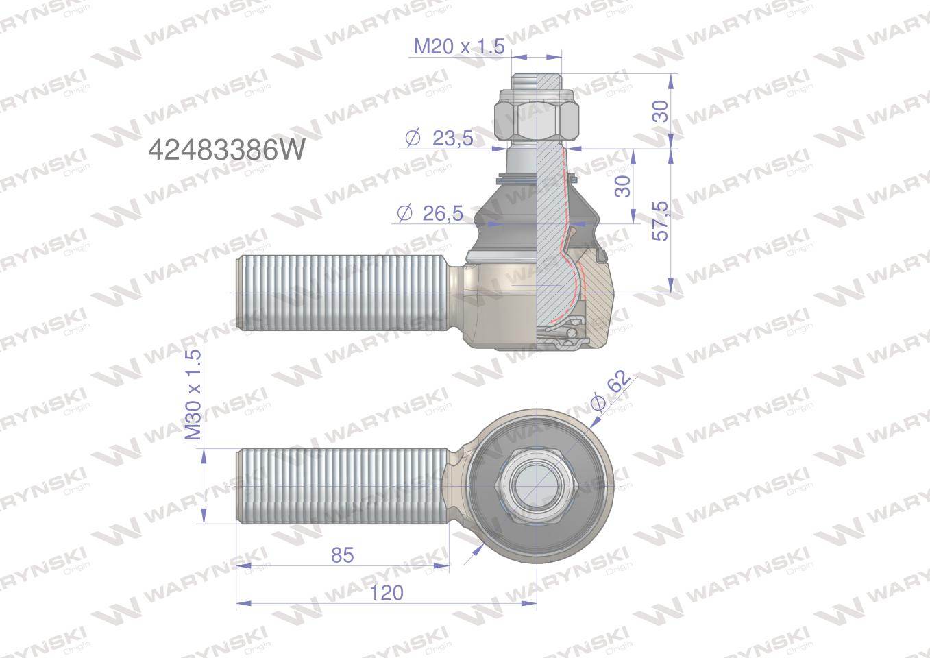 Przegub układu kierowniczego jcb 42483386 waryński