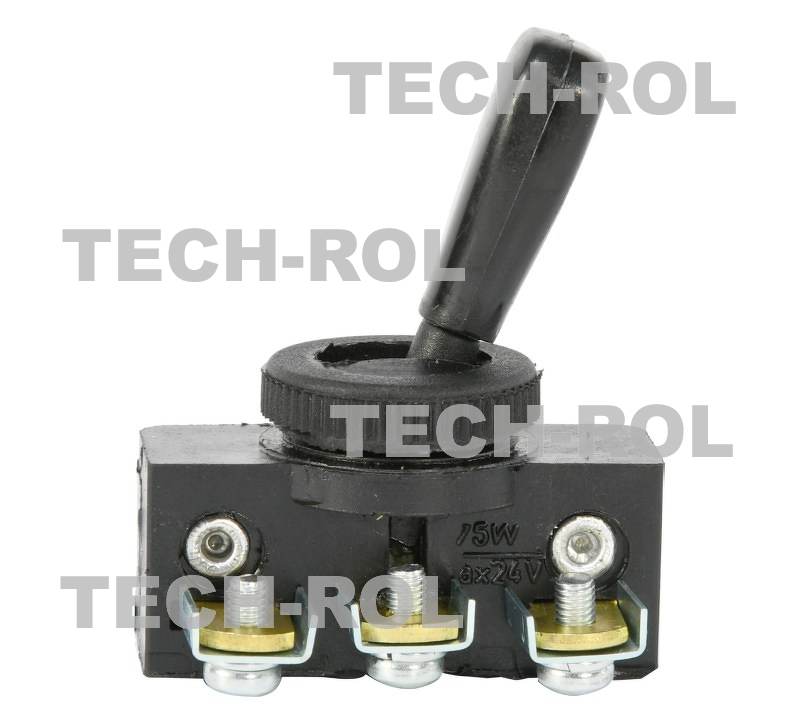 Przełącznik dźwigienkowy, hebelkowy, dwupołożeniowy. Trzy złącza śrubowe (1-0-2). Zastosowanie w instalacjach ciągnikowych Ursus C330 i C360.