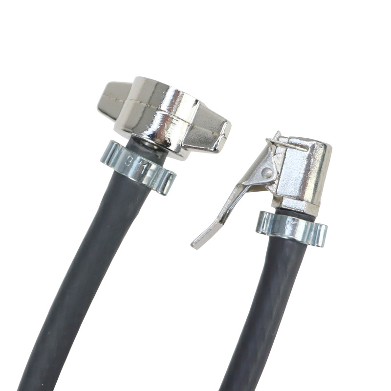 Wyposażone w metalową nakrętkę do kompresora samochodowego oraz w końcówkę do pompowania kół