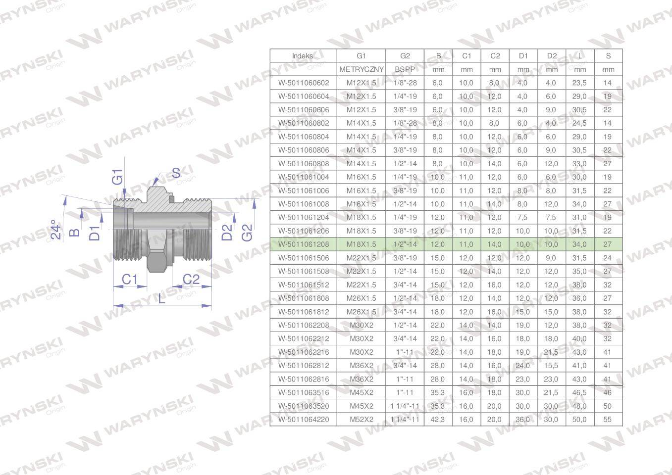 Przyłączka hydrauliczna bb xge m18x1.5 12lx1/2″ bsp ed waryński 10szt