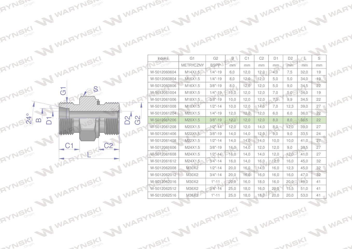 Przyłączka hydrauliczna odmiana ciężka xge bb m20x1.5 12sx3/8" bsp ed waryński 5szt