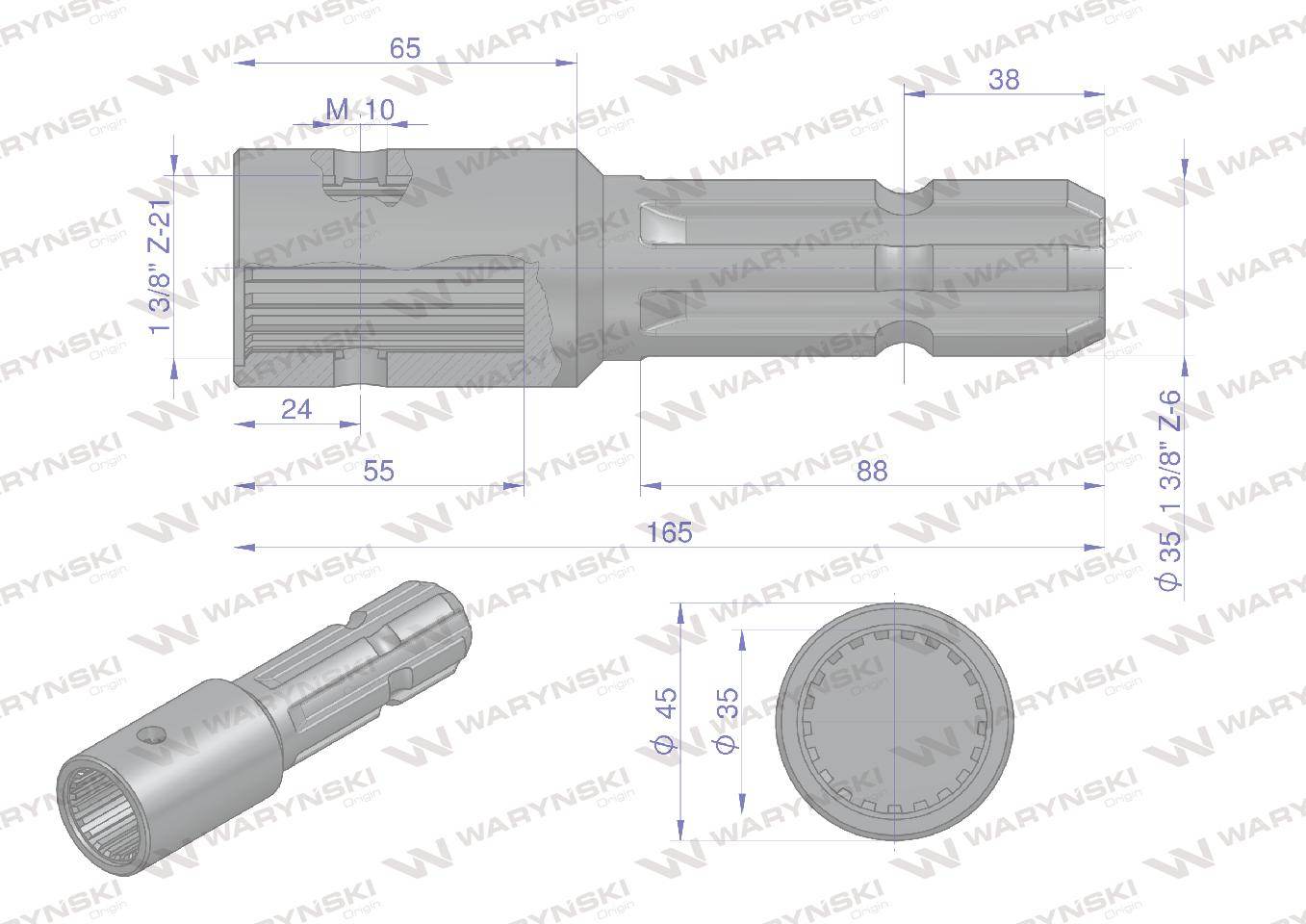 Redukcja adapter z otworem zabezpieczającym 1 3/8″ 21 wpustów na wałek 1 3/8″ 6 wpustów waryński