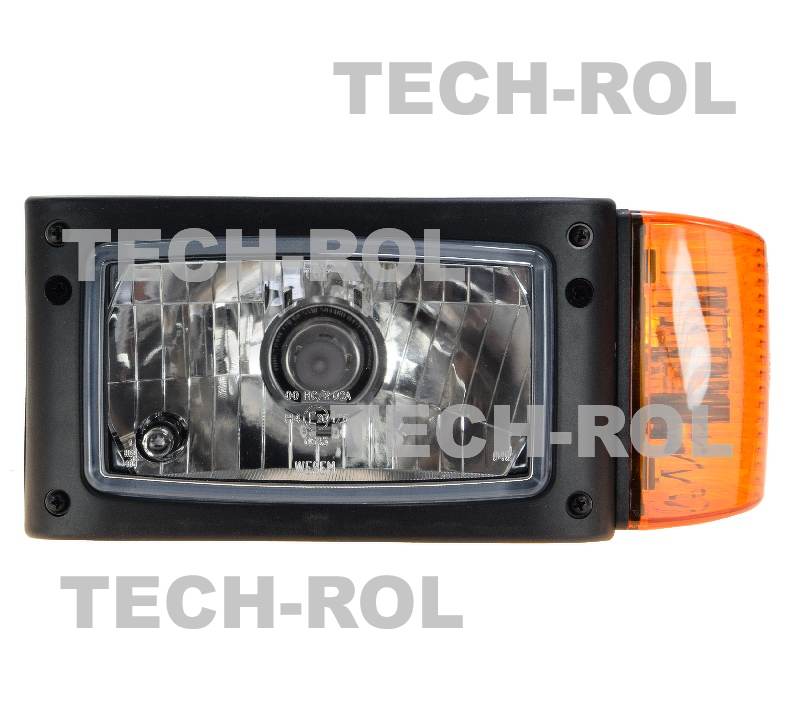 Reflektor przedni lewy, plastikowy, H4, 12V / 24V, światła mijania, drogowe, pozycyjne, kierunkowskaz, 110 mm / 245 mm, Merlo, JCB, Genie Terex, Manitou, Ausa, Eurocomach REPR2.42750.02 Wesem